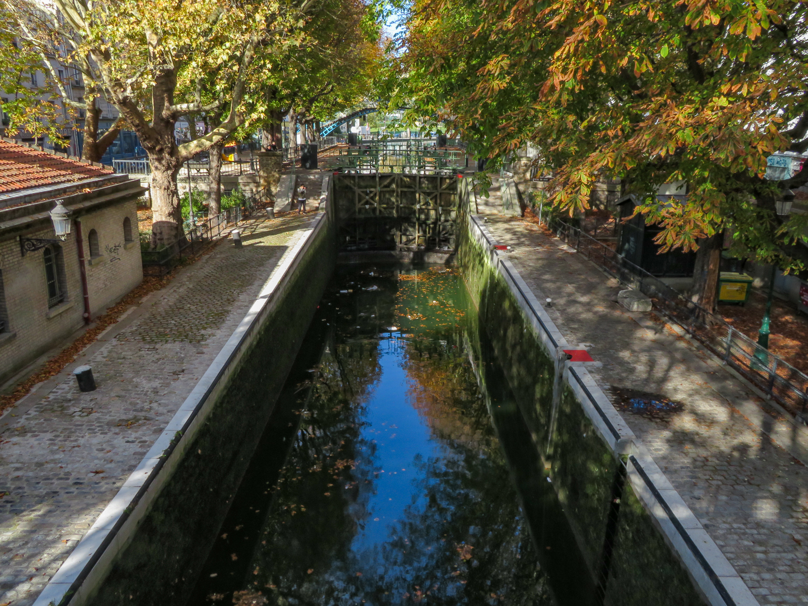 Au 102, Hôtel du Nord (Film avec Arletty). En face de la passerelle, double écluse et pont tournant.