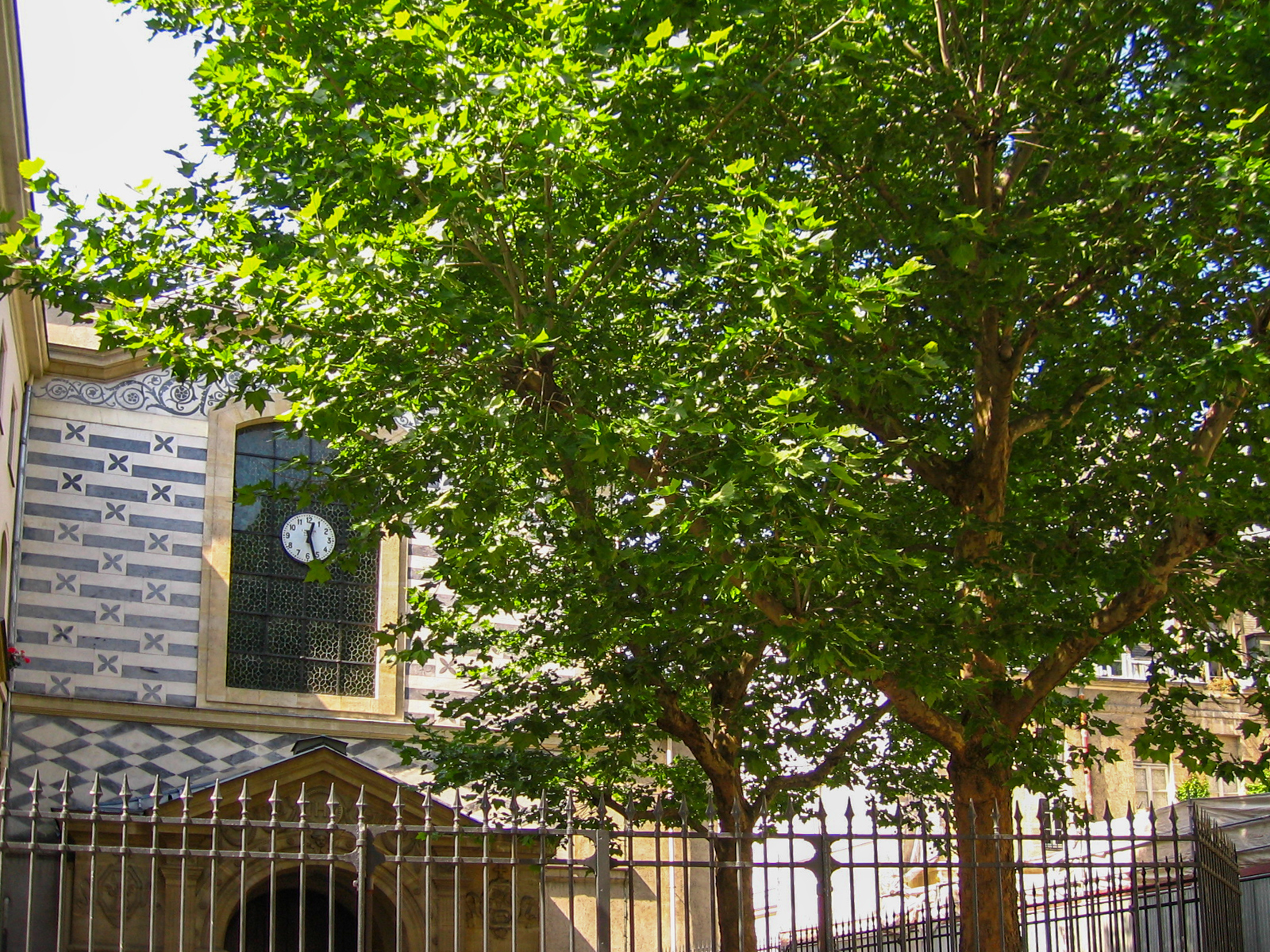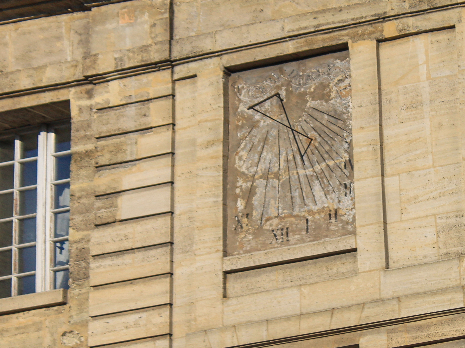 A l’angle de la Rue, Hôtel de Rohan (Construit en 1705, Chevaux du Soleil au-dessus de la porte). Tourner à droite dans la Rue des 4 fils. A droite, au 18, cadran solaire.