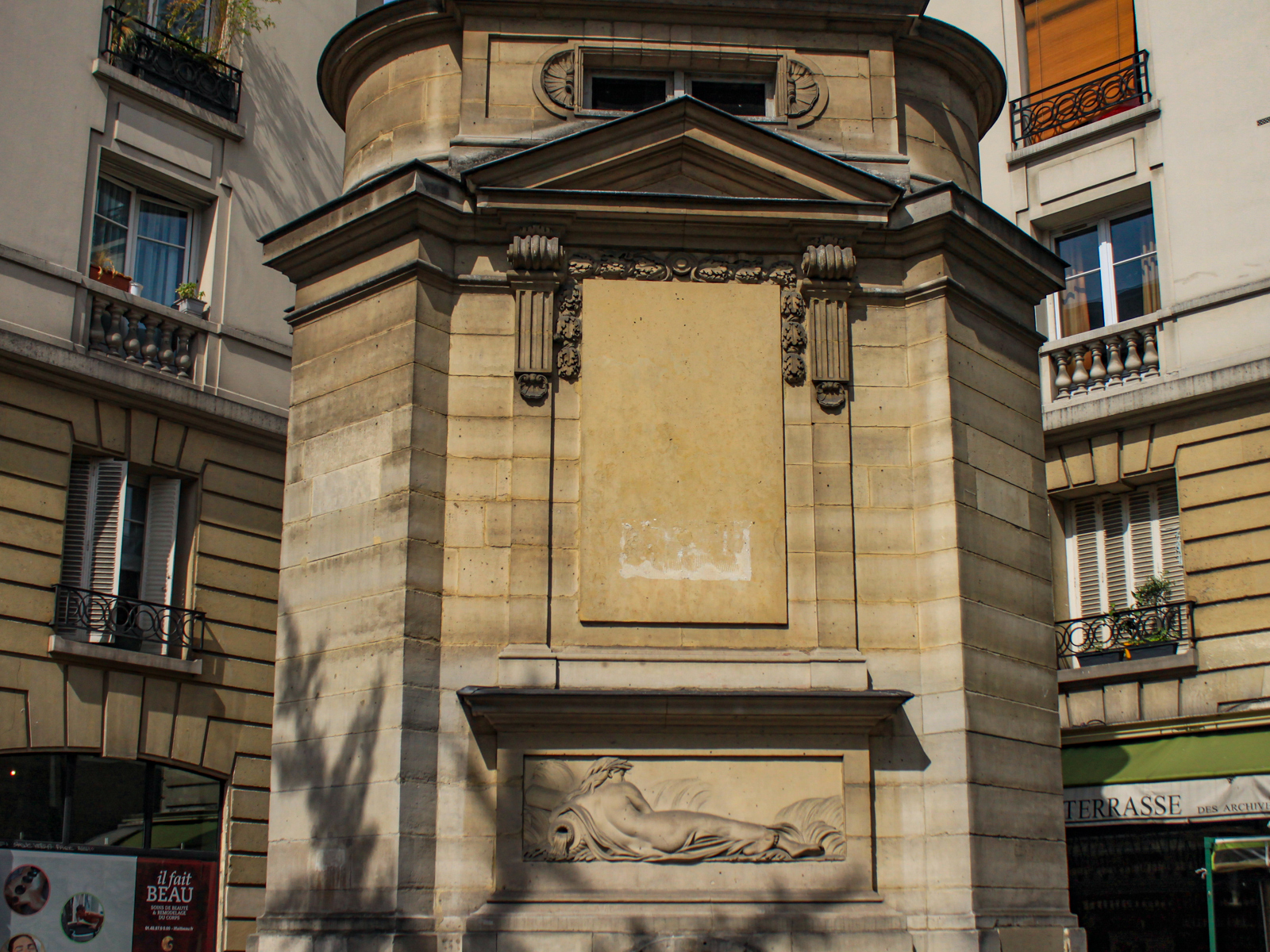 Longer les Archives Nationales et le Musée de l’Histoire de France (Hôtel de Soubise) et le Musée de la Chasse et de la Nature (Hôtel Guénégaud construit par Mansart en 1655). A l’angle, Fontaine des Haudriettes (datant de 1624). Tourner à gauche dans la Rue des Archives.