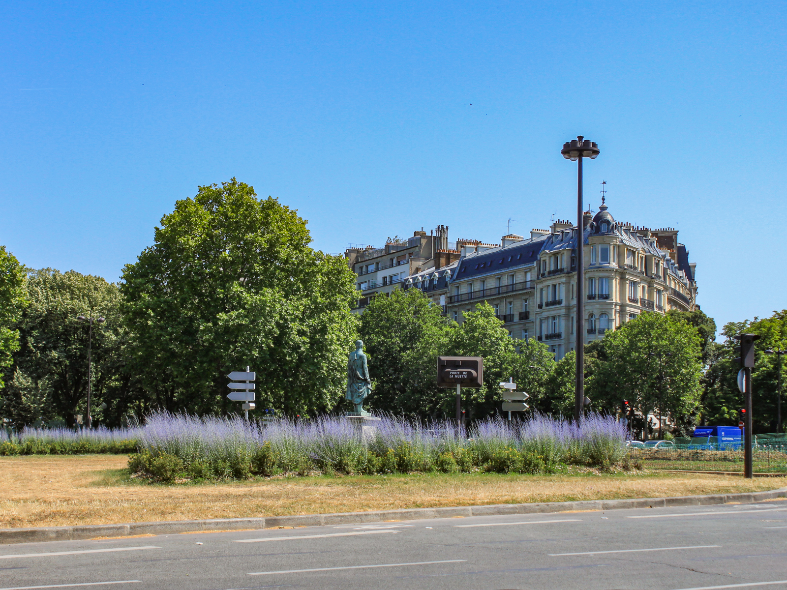 Longer le Lac (location de barques) coté Est jusqu’au milieu. Tourner à gauche et longer la pelouse de la Muette. Prendre en face l’Avenue de St Cloud qui mène à la Place de Colombie.