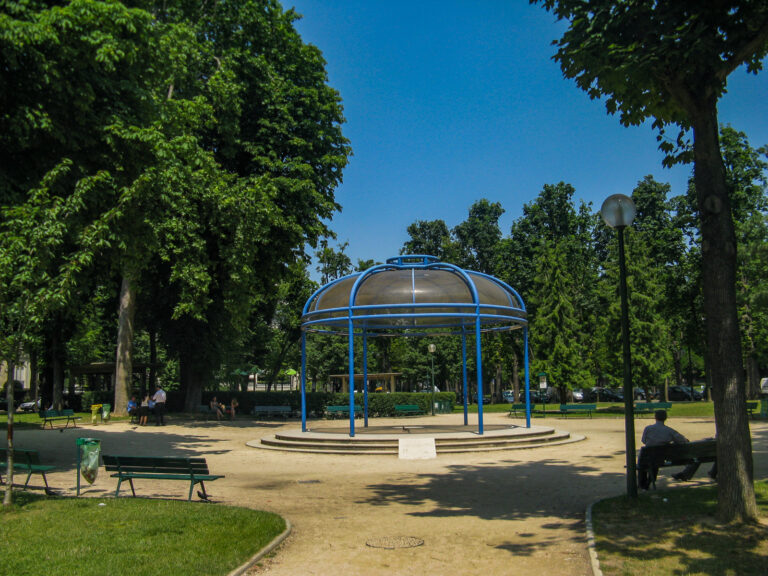 (Jardin du Ranelagh , Vestiges du Château de la Muette, lieu de départ de la Montgolfière de Pilâtre de Rozier). A droite, Musée Marmottan.