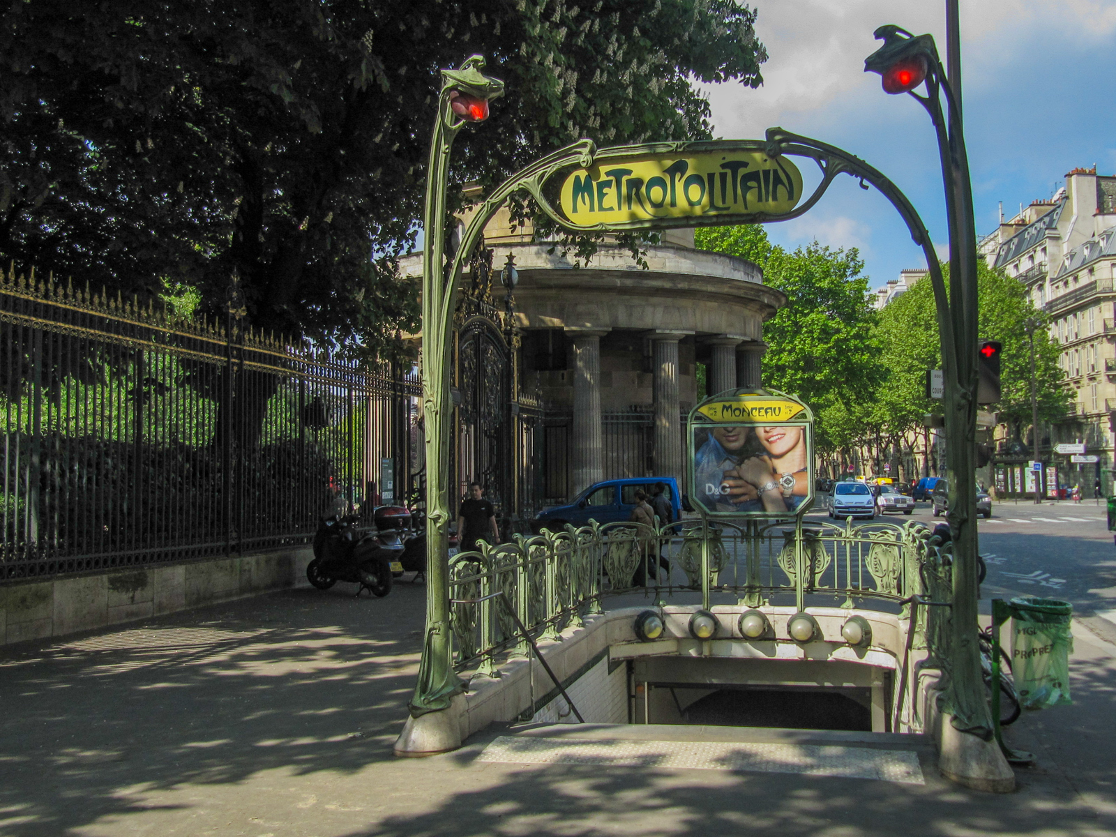 Prendre à droite la Rue Rembrandt. Sur la gauche, au 9 rue Murillo, restes du château des tuileries. Entrer dans le Parc Monceau (Construit en 1769 à l’époque du Duc de Chartres, Style Anglais). Sortir par la Place de la République Dominicaine.