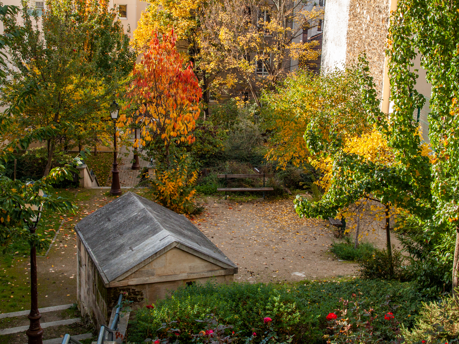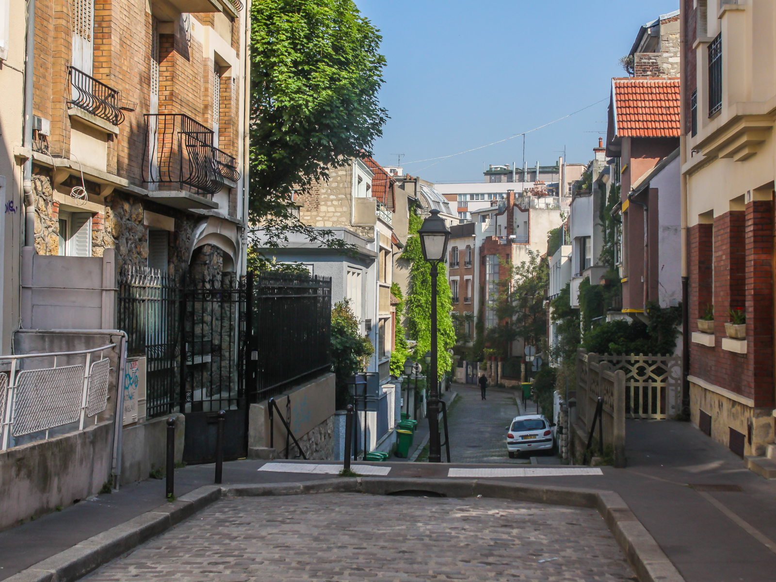 Tourner à gauche dans la Rue de Bellevue puis la Rue Janssen en face. Prendre la Rue de l’Inspecteur à droite puis la Rue des Bois à gauche. Prendre la Rue Paul de Kock à droite. Prendre la Rue Emile Desvaux à gauche. Au 17, Villa Koutok (Rosiers, Verrières et frise de mosaïque , maisons datant des années 20).