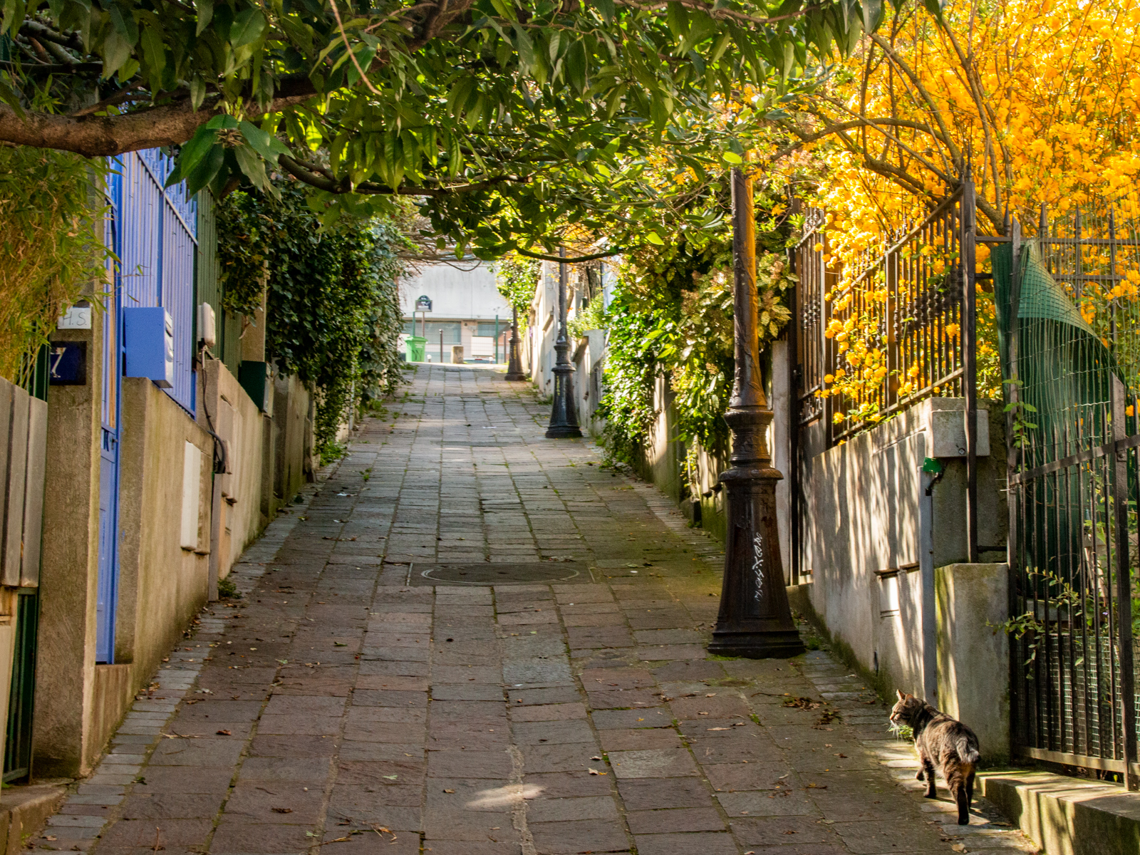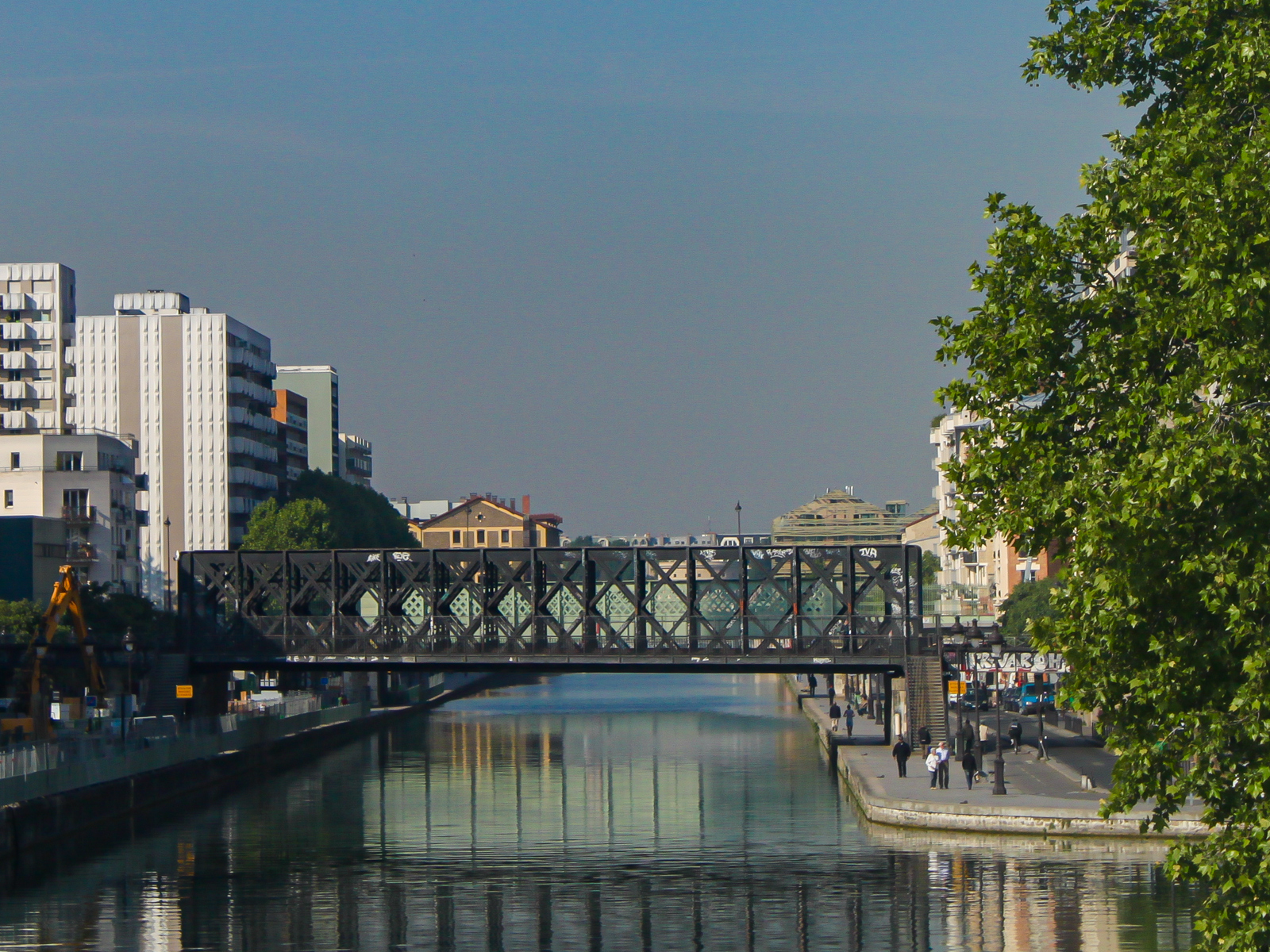 Prendre l’allée à droite et longer la Cité des Sciences et de l’Industrie. Prendre la galerie de la Villette et passer sur la passerelle passant au-dessus du Canal de l’Ourcq. A droite, au loin, Pont de la Petite Ceinture.