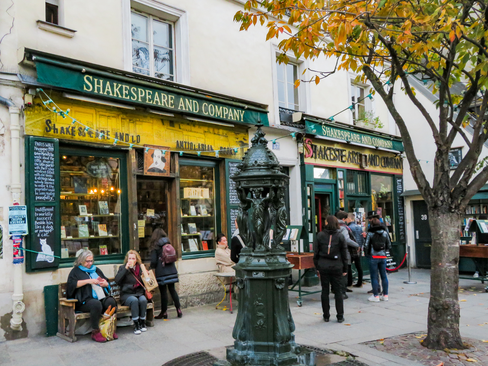 Au 37 , Fontaine Wallace , Au 39 , Une des plus petites maisons de Paris. Fameuse librairie Shakespeare face à la Seine. Prendre en face la Rue de la Huchette.