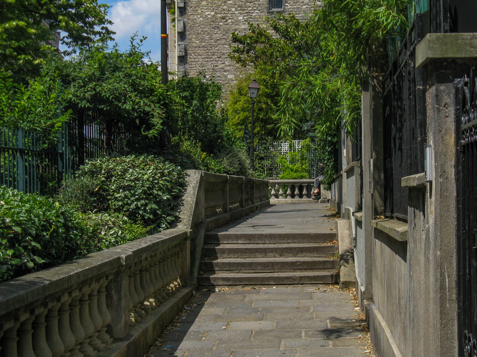 Impasse Calmels à gauche. Rue Calmels à droite (Villas). Prendre la Rue Montcalm à droite puis entrer vers la gauche dans le Square Serpollet. Ressortir en face par la Rue Marcadet et la prendre sur la gauche. Prendre à droite la Rue de la fontaine au But. Au bout de la rue, prendre les escaliers qui menent à la Rue Caulaincourt.
