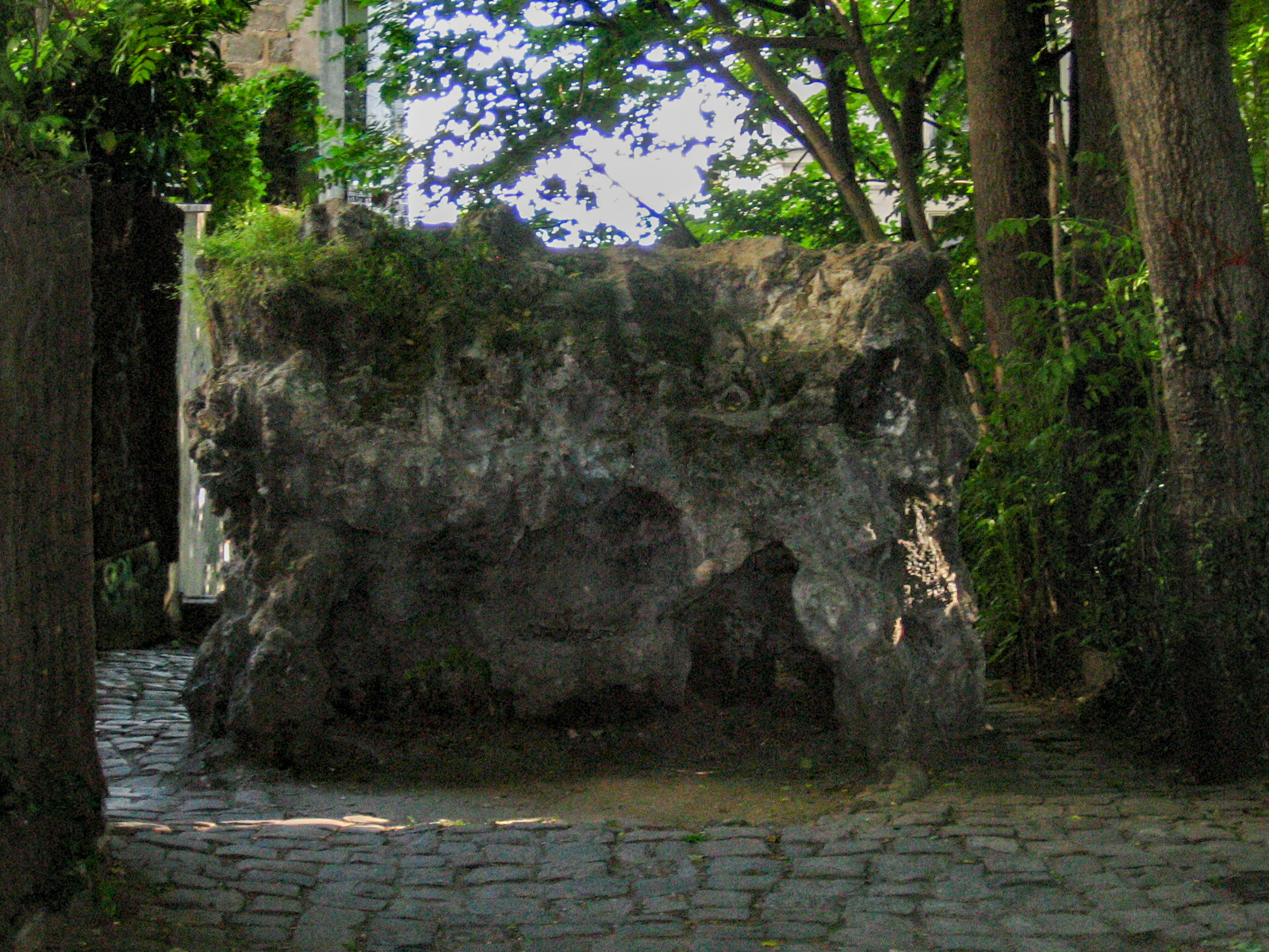 Prendre le passage situé à gauche qui mène au rocher de la sorcière puis à la Rue Lepic. Maquis de Montmartre sur la gauche.