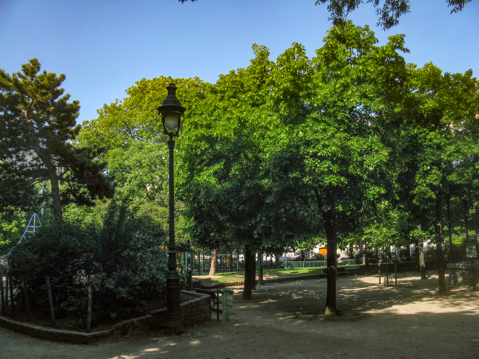 A droite, Square Suzanne Buisson avec Statue de St Denis portant sa tête.