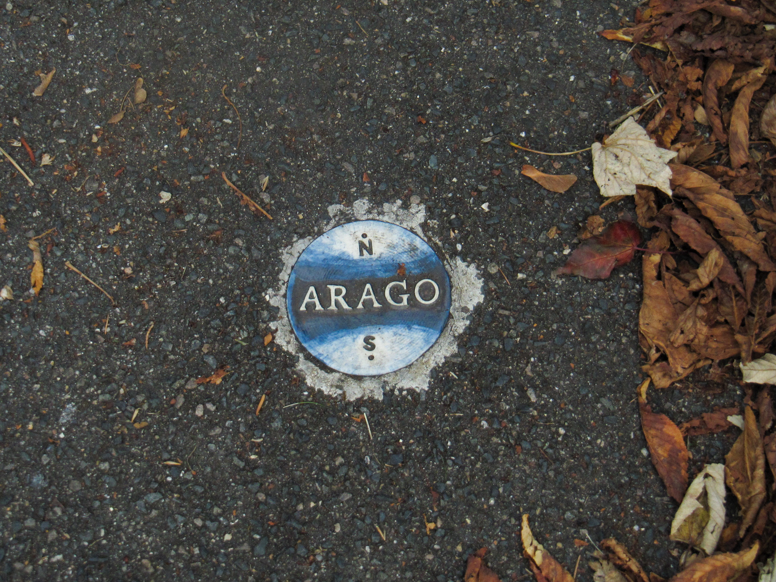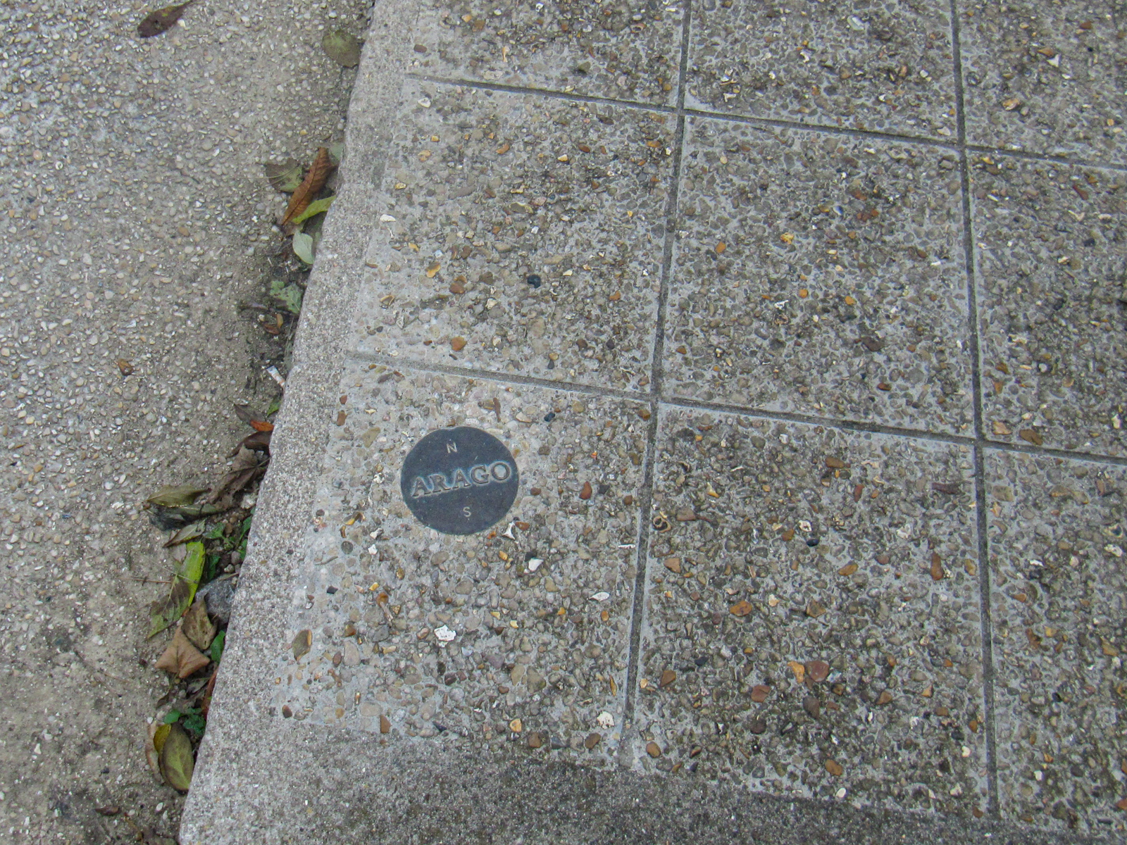 Médaillon Arago près du bâtiment. Tourner à droite pour se diriger vers la Mire du sud (Inscription datant de Napoléon 1er , Mire du Nord à Montmartre).