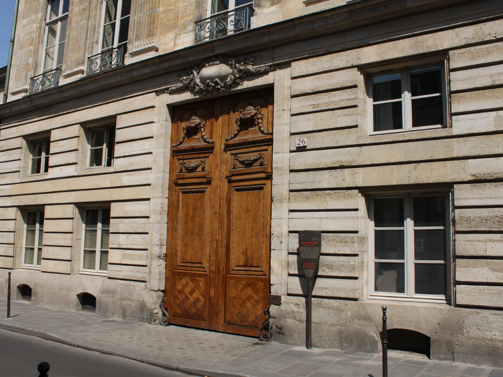 Longer le Musée Carnavalet (Histoire de Paris , construit par Mansart en 1568). Sur la droite, voir l’Hôtel Lamoignon (construit par Diane de France en 1585 , bibliothèque historique de Paris).