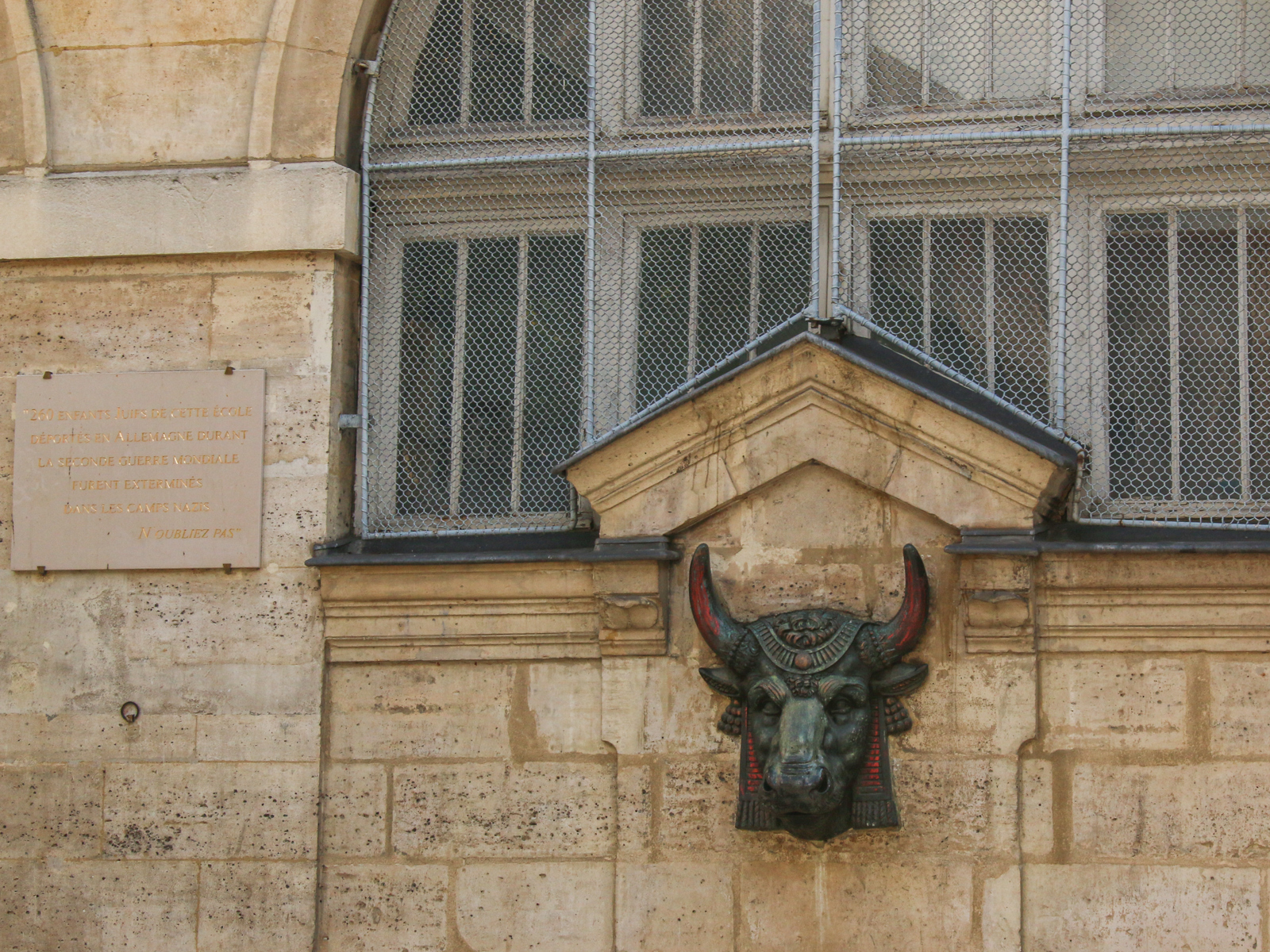 Faire un aller retour à droite dans la Rue des Hospitalières St Gervais, au 8 , Enormes taureaux indiquant l’emplacement d’un ancien marché. Revenir rue des Francs Bourgeois. Au 38 , Impasse des Arbalétiers (1607 , pour Henri IV, Résidence de Isabeau de Bavière au début du 14e siècle)).