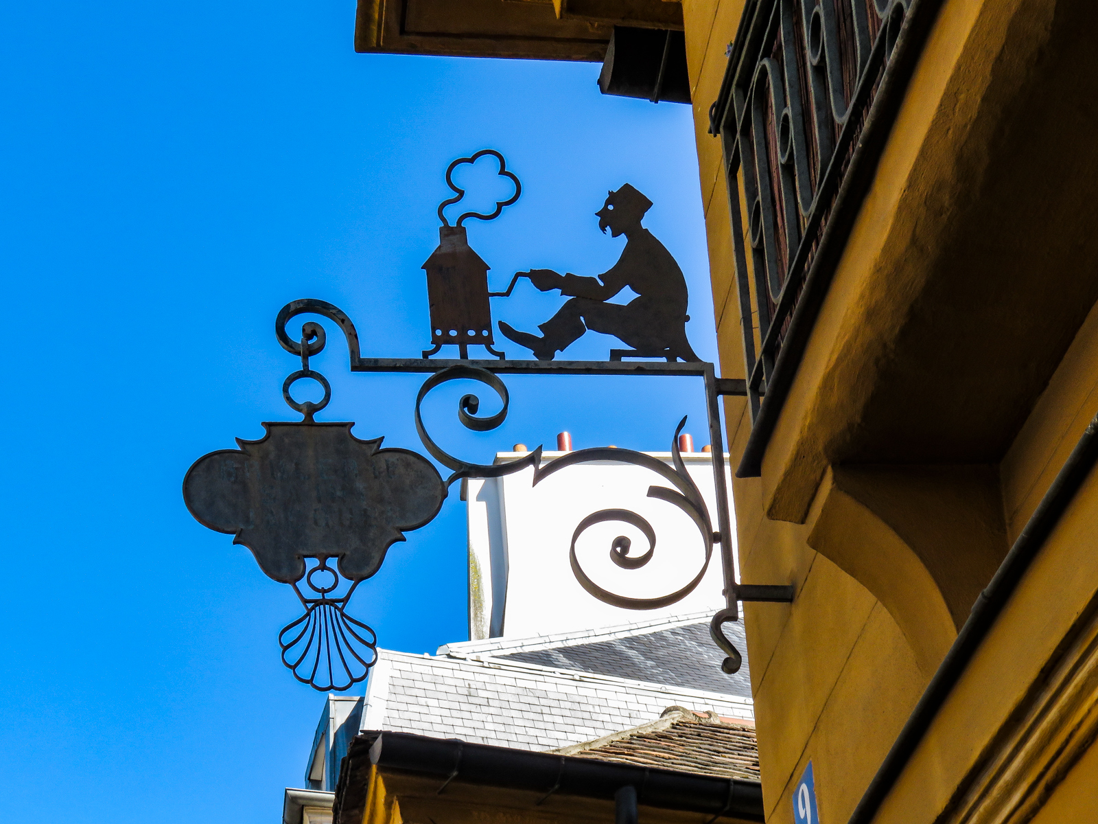 Enseigne de 1914 (Puits à ferronnerie). Continuer dans la rue et arriver sur une autre petite place.