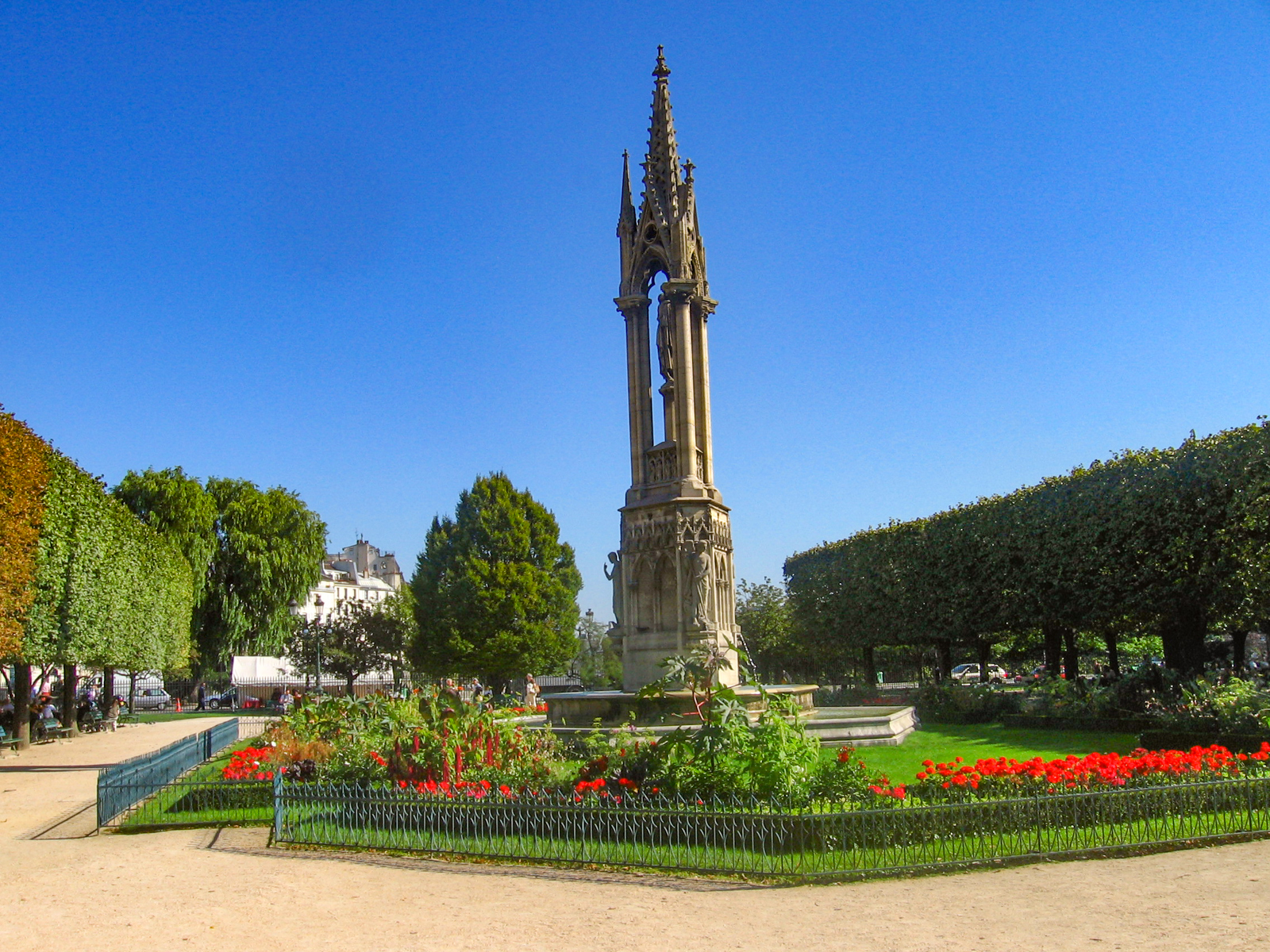 Le cabaret à gauche existait déjà en 1250. Au 26, dans la courette, lettres gothiques gravées sur le sol. Aux 22 et 24 , Maisons Chanoinesses datant du XVIe siècle. Au 17, Pierre de cuve monolithe. Tourner à droite dans la Rue Massillon. Tourner à gauche dans la Rue du Cloître Notre Dame puis entrer à droite dans le Square Jean XXIII (Ancien square de l’Archevêché).