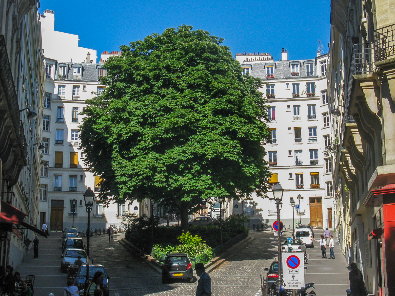 A droite , Vue sur le Sacré Cœur et sur les vignes de la Butte.