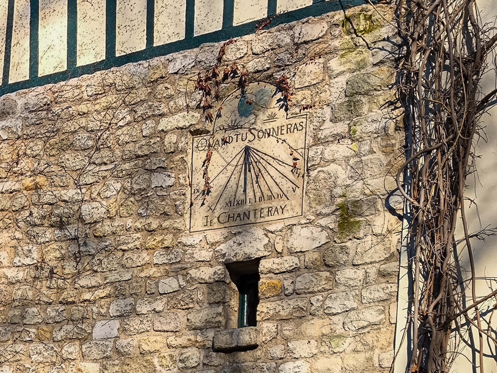 Faire un aller retour , rue de l’abreuvoir , pour voir un cadran solaire sur la façade d’une belle maison. Tourner à droite dans la Rue des Saules.
