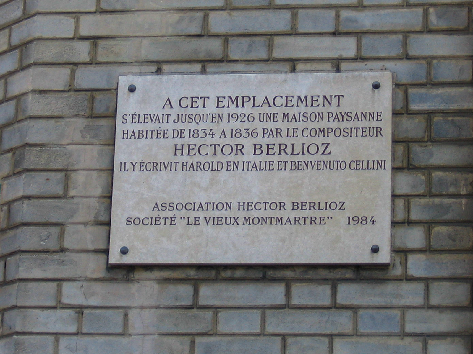 Tourner à droite dans la Rue Lamarck. Beau restaurant à gauche. Monter à droite les escaliers de la Rue de l’Abbé Patureau. A l’angle , Plaque pour Berlioz.
