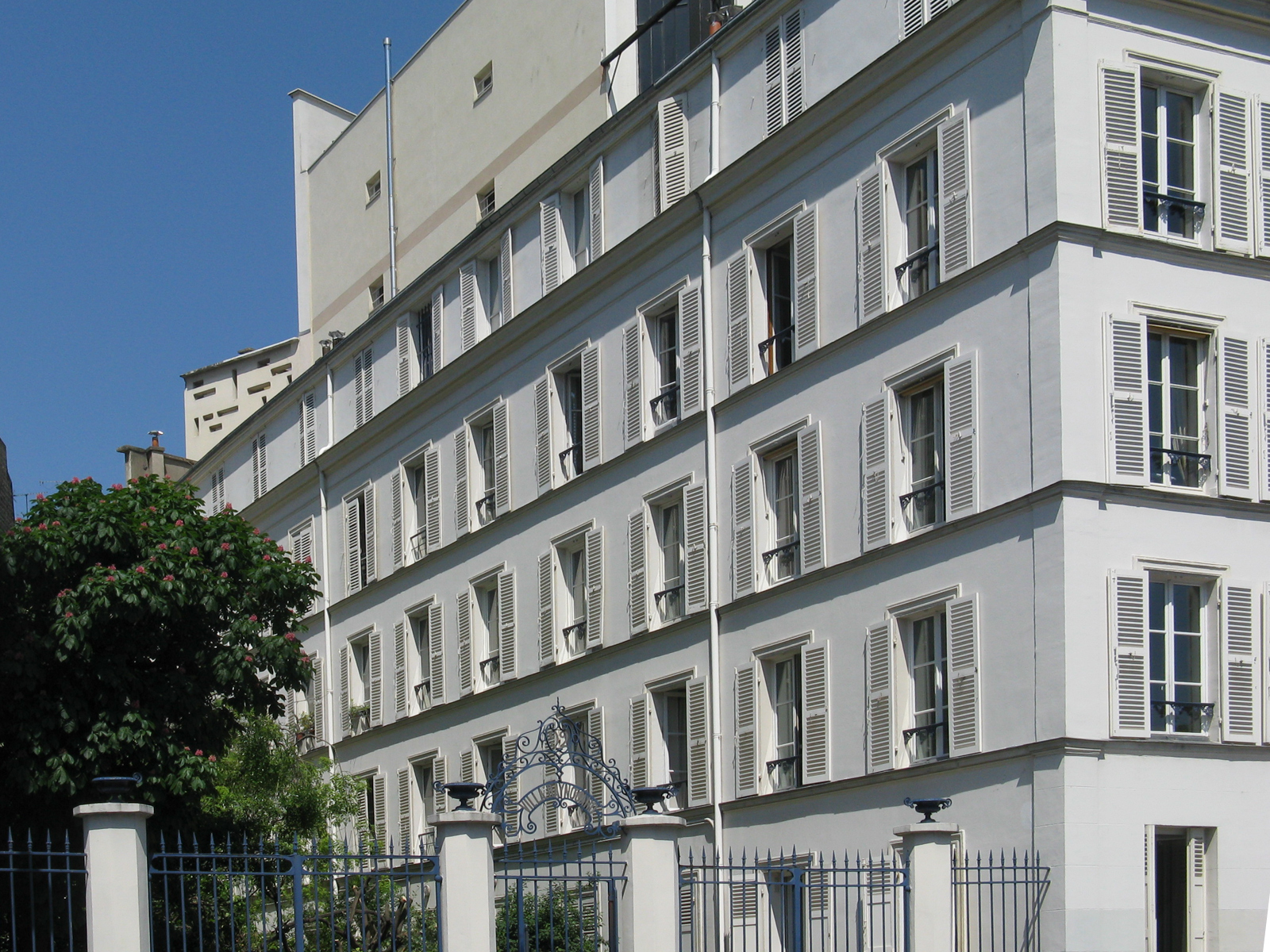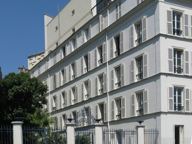 Prendre la Rue Raynouard qui longe la Maison Radio France puis en face la Rue La Fontaine (Hôtel Mezzara d’Hector Guimard). Un peu plus loin, Villa Raynouard.