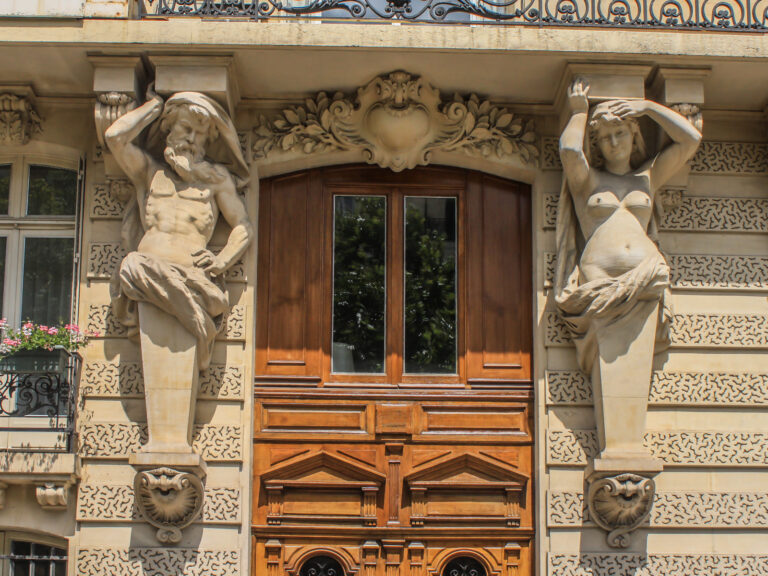 Au bout, en face, École Militaire (Créée en 1751 par Gabriel pour les jeunes de la noblesse). Tourner à gauche vers la Place de l’Ecole Militaire puis à droite dans l’Avenue de Tourville. Cariatide et Atlante au numéro 4.