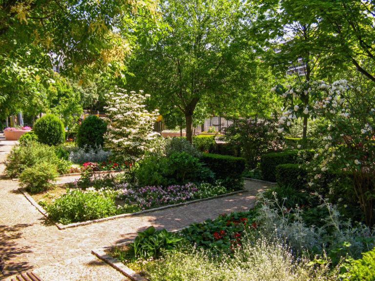 A l’angle Café Guimard. Entrer à gauche dans le Square du Pré aux Chevaux.