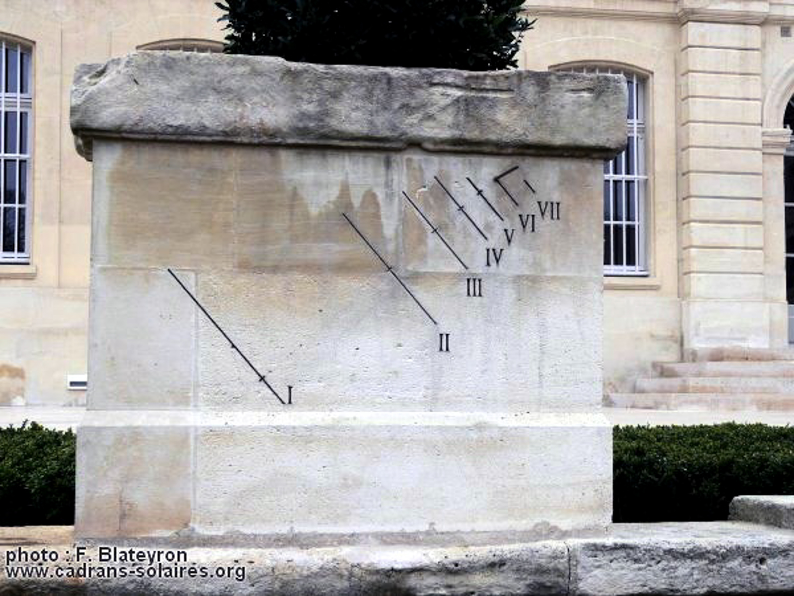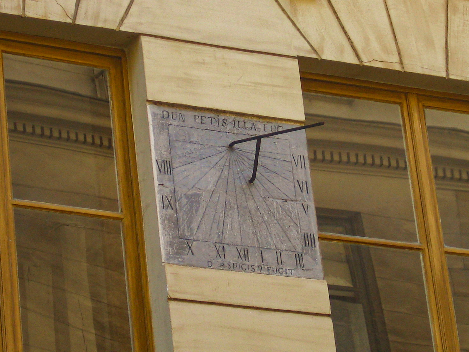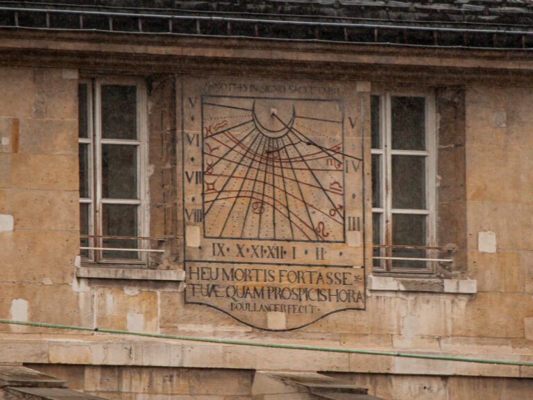 De nombreux cadrans sont visibles sur 3 des 4 facades de la cour d’honneur des invalides des cotés nord,ouest et est de l’hôtel. Les cadrans sont souvent en double ou composés de 2 parties. L’hôtel date de 1670 , sous le règne de Louis XIV et servait d’hopital pour les invalides de guerre.