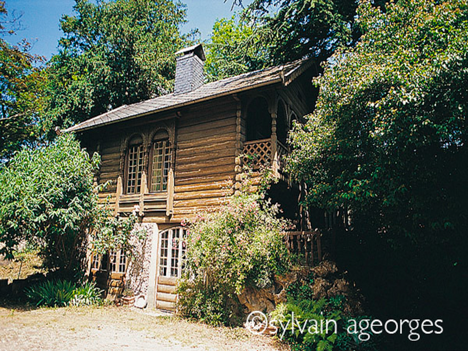 Petit chalet scandinave. Ce chalet est inaccessible et non visible depuis la rue. Il est constitué de rondins de bois. Cette maison représentait les pécheurs du nord lors de l’exposition.